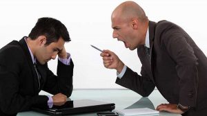 (Jefe enojado y alterado gritando al empleado causando un perjuicio laboral)
