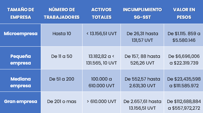 Por último, evite multas por el incumplimiento frente al SG SST de su empresa, aquí les comparto un cuadro con las ultimas actualizaciones,